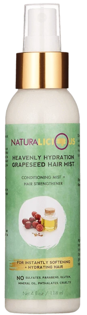 - Apply Heavenly Hydration Grapeseed Hair Mist daily to keep your hair moisturized and to stimulate growth.